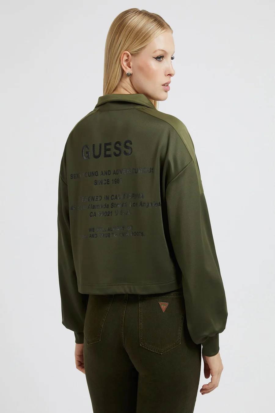 This women's crop top from Guess is the perfect choice for everyday looks during the winter months. With long sleeves and a zip neckline, it offers the option to adjust the depth of the neck, adding a dynamic touch to your style. Its green colour highlights its modern character, while the regular fit ensures comfort throughout the day. It's ideal for layering and can be paired with various trousers or skirts, making it a staple piece for your wardrobe.