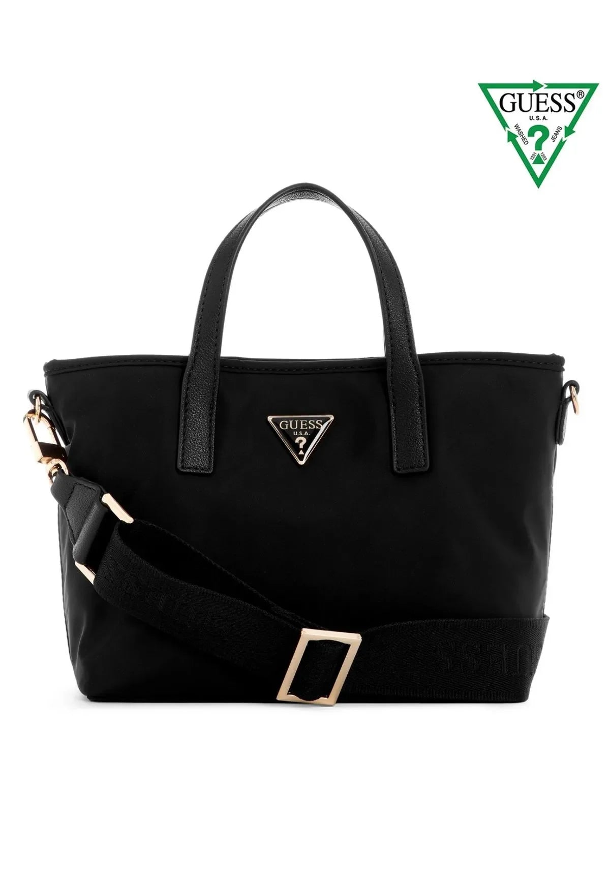 Gold-tone hardware and front signature triangle plaque